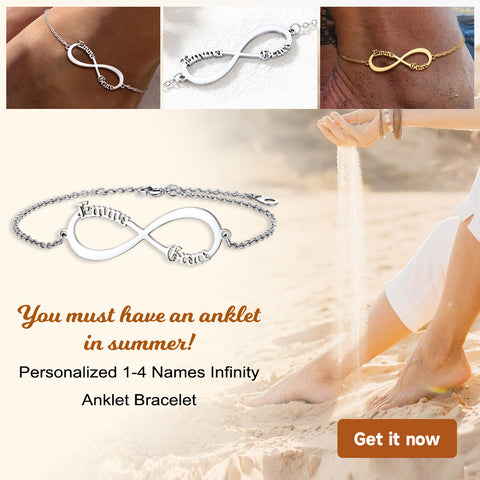 Personalized 1-4 Names Infinity Anklet Chain Ankle Bracelet for Women