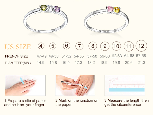 This personalized birthstone ring, crafted from hypoallergenic S925 sterling silver with a high-polish finish, features custom names and birthstones, making it a meaningful keepsake for moms, wives, daughters, or best friends. Available in sizes 5-11, it offers a comfortable fit and long-lasting shine. Perfect for Mother's Day, birthdays, anniversaries, or special occasions, this elegant family ring comes in a gift box, making it a thoughtful and timeless gift for the special women in your life.