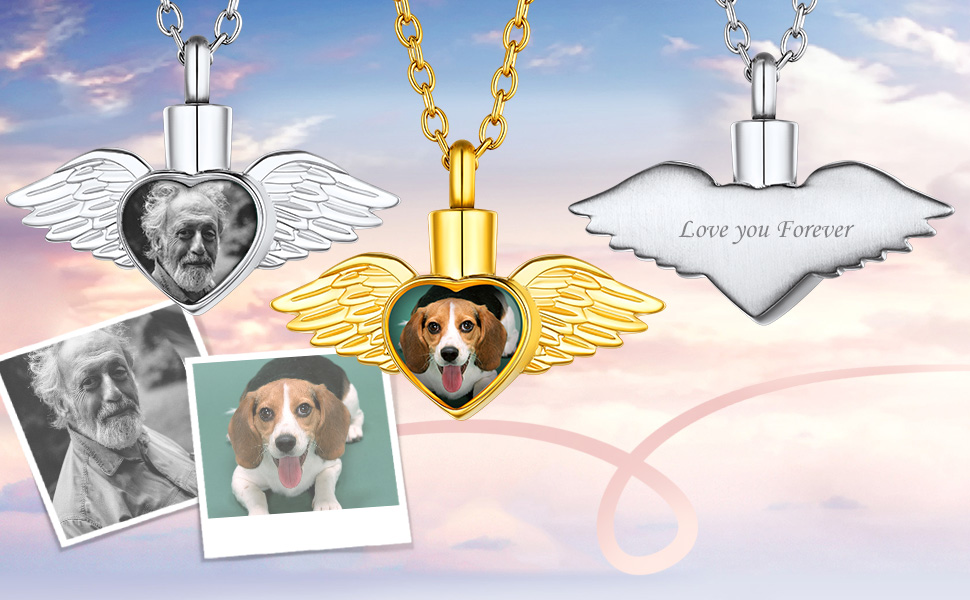 Personalized Angel Wings Urn Necklace for Ashes with Photo