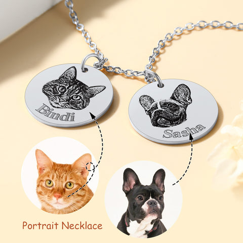 Customized 1-3 Round Pet Portrait Necklace with Name for Pet Lover