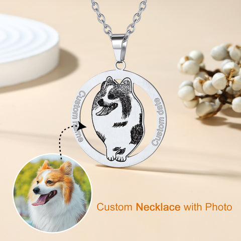 Customize your pet's portrait on the necklace and engrave name, birthsday, symbol, promise or other meaningful text on it, making it a unique necklace to keep your loving memory always near your heart. Stylish and Exquisite. This subtle yet sensational personalized necklace is wonderful keepsake to memorialize your pets, lover, family members and best friends.