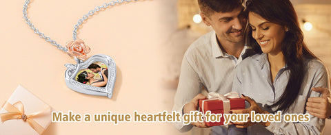 Customized Rose Heart Copper Photo Necklace. Put your picture on the front and engrave meaningful taxt on the backside. Nothing is better than jewelry and flowers that can touch a women's heart, especially our heart necklace with picture is timeless. Custom-made heart-shaped necklace means that you are always in my heart. The best surprise for your lover!