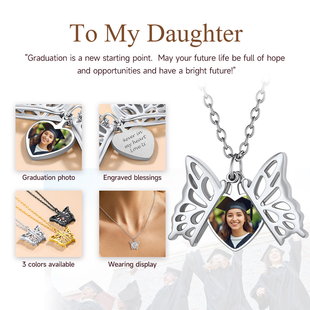 Personalized Hollow Butterfly Photo Necklace: With the picture of your loved ones or an important event on the pendant, keep some loving memories of school near your heart. This meaningful yet sensational personalized locket necklace is a wonderful keepsake to memorialize your family members and best friends.