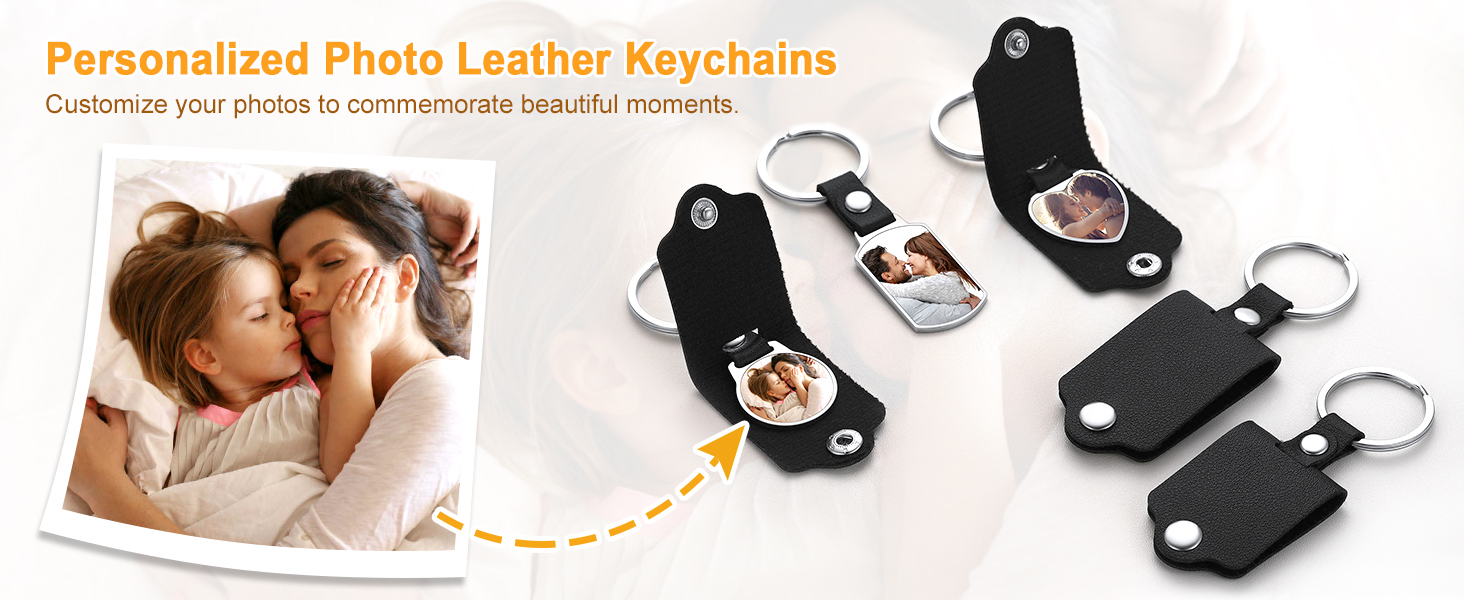 Photo keychain with leather case, protect the photo from scratches. The back could be laser engraved with characters, easy to carry. Customize your picture keychain to commemorate beautiful moments.