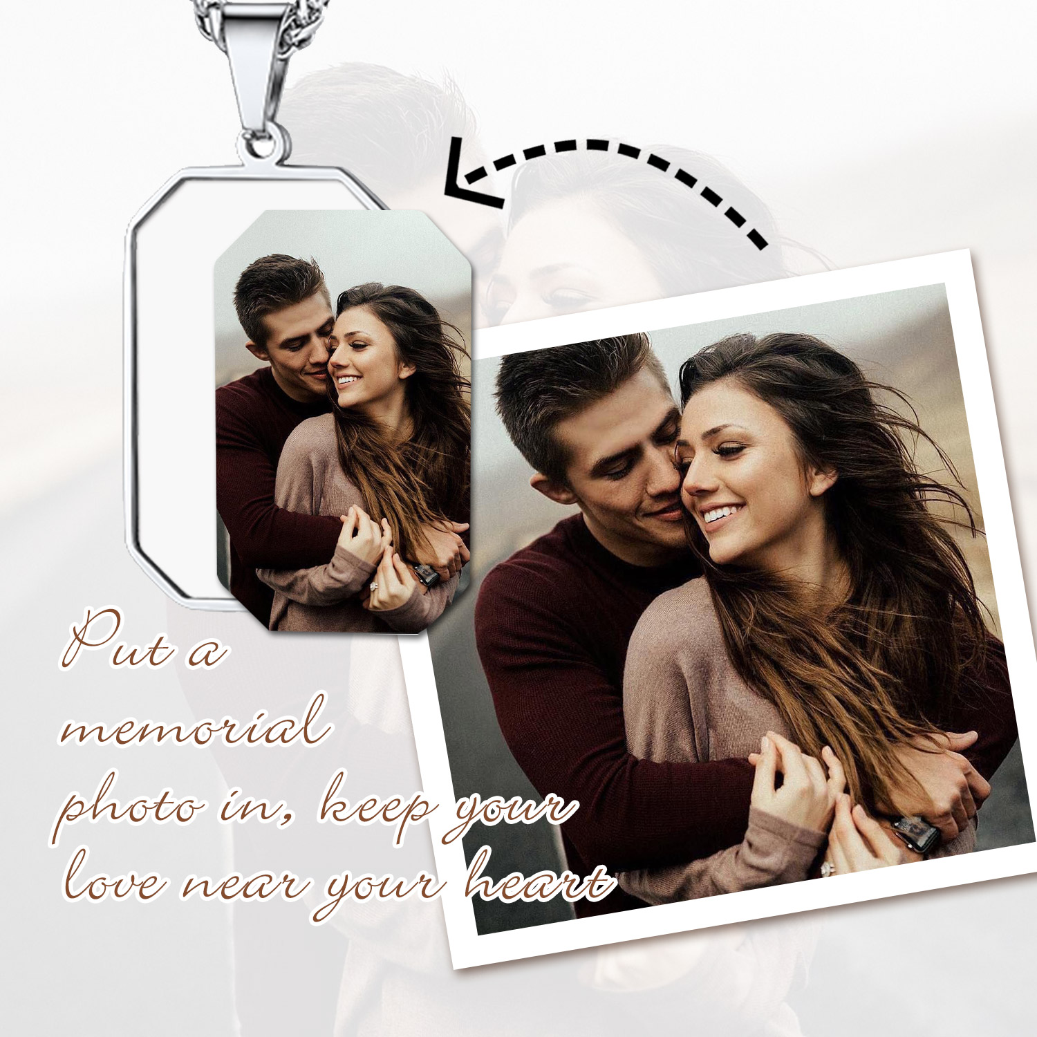 Create a personalized photo necklace with your favorite picture on this Customized Photo Octagon Dog Tag Picture Necklace. The front features a custom photo, while the back can be engraved with a special message. A perfect way to carry cherished memories close to your heart, this picture pendant makes a thoughtful gift for both men and women.