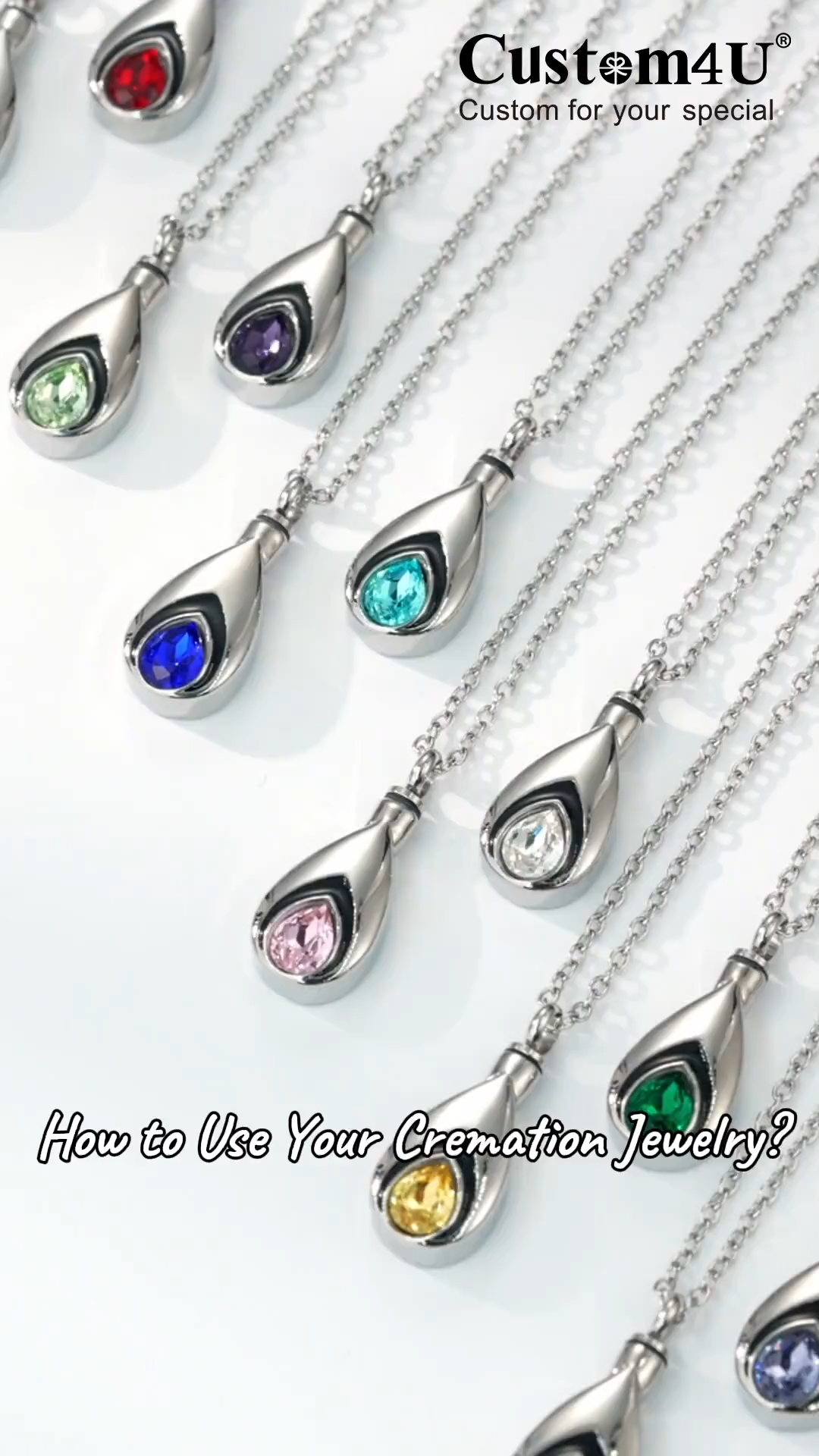 Memorial Urn necklace for ashes — a personalized teardrop birthstone pendant designed as meaningful wearable urn jewelry for honoring loved ones. Each necklace is made to order and handcrafted by skilled artisans.