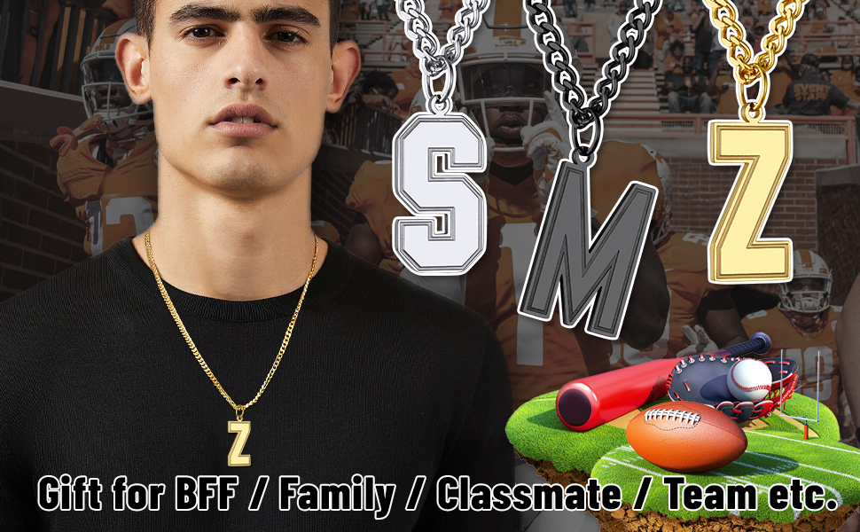 Initial Stainless Steel Sports Letter Necklace With Cuban Link Chain