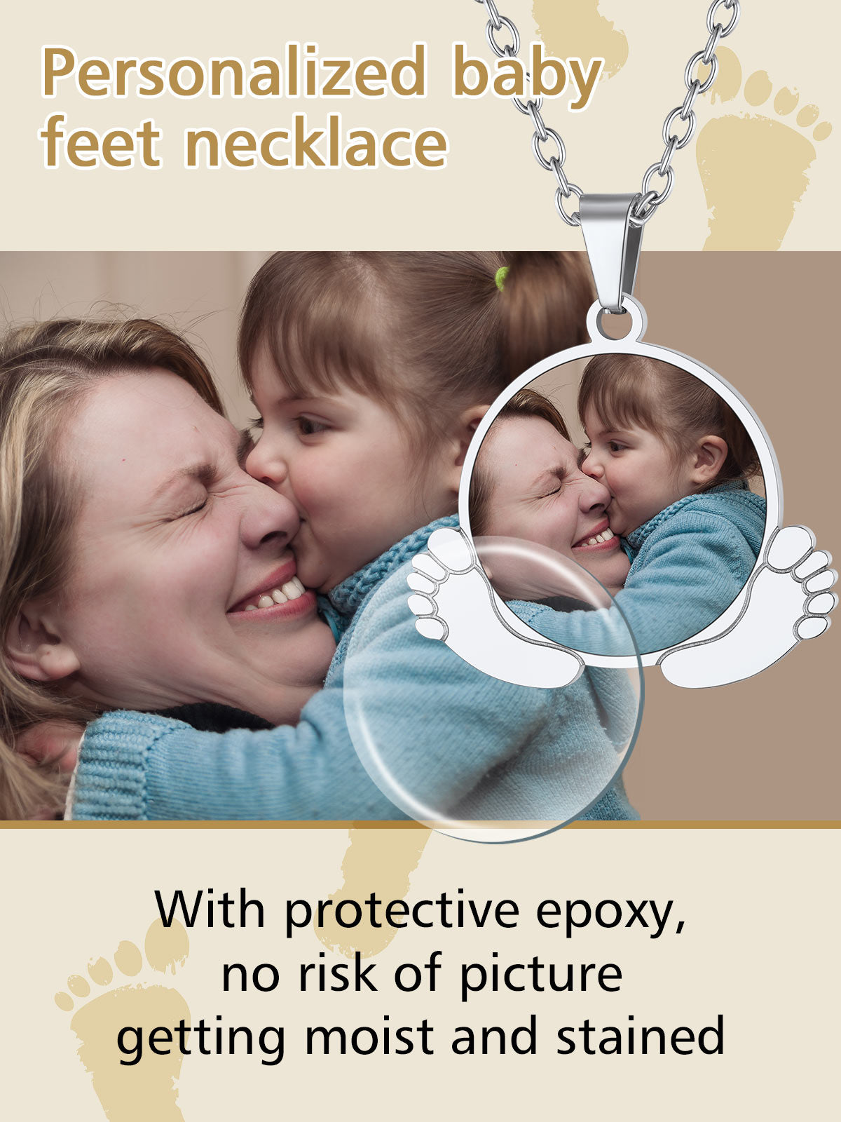 Personalized Baby Feet Necklace with Pictures for Mom